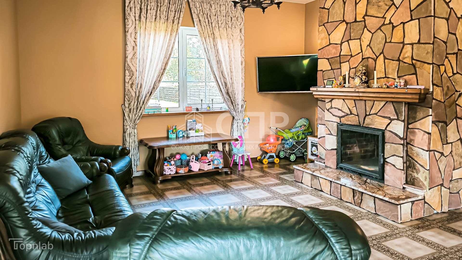 Дизайнерский ремонт с камином из цельного камня