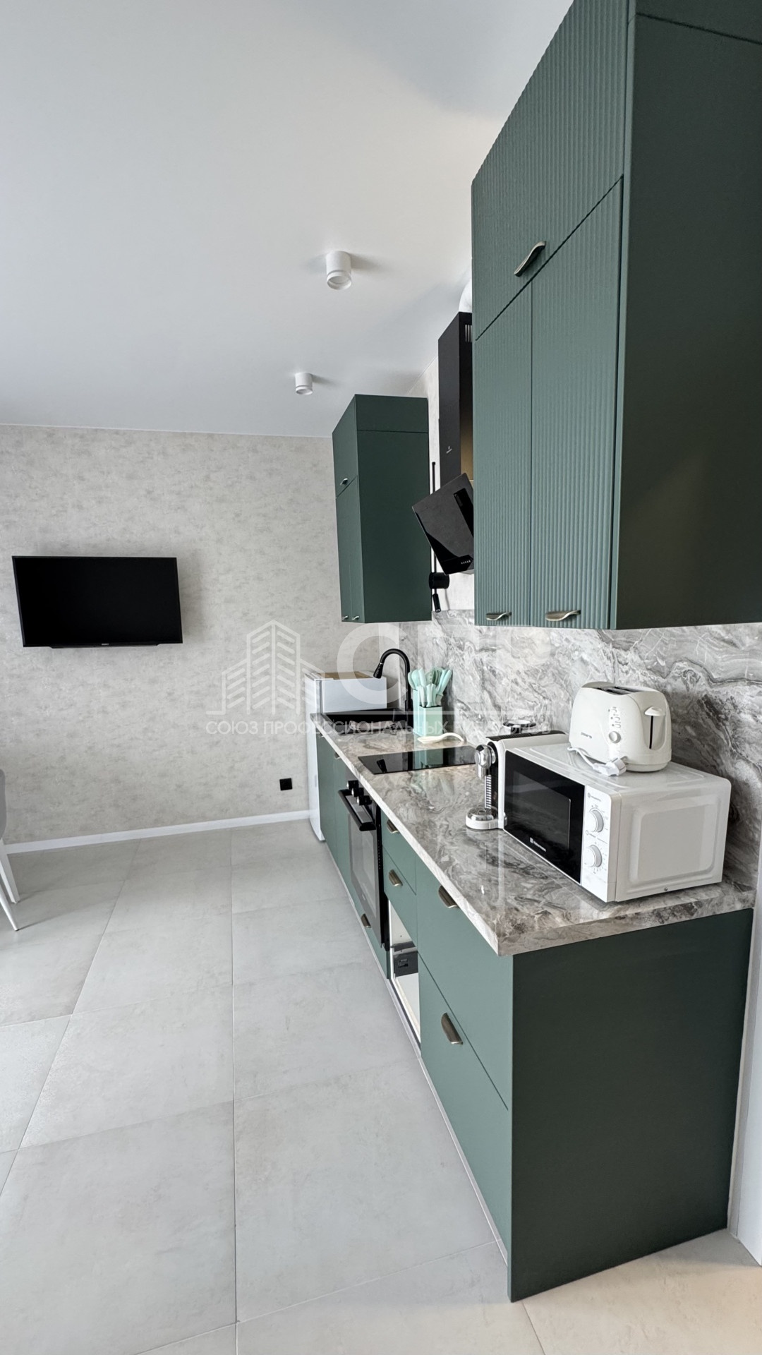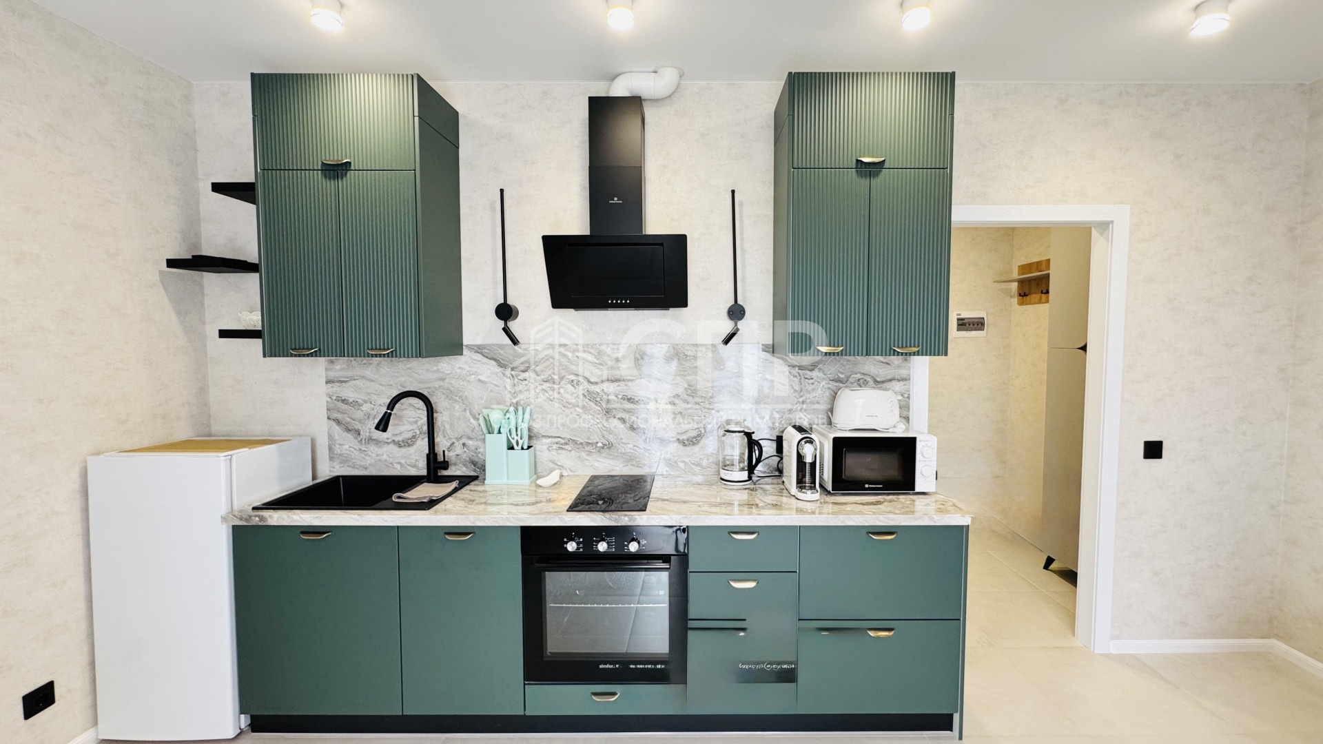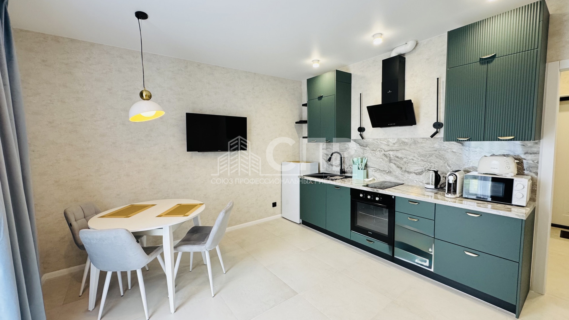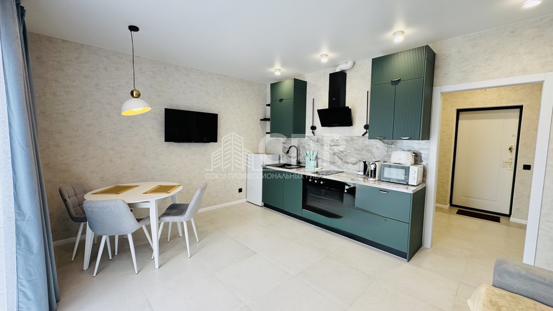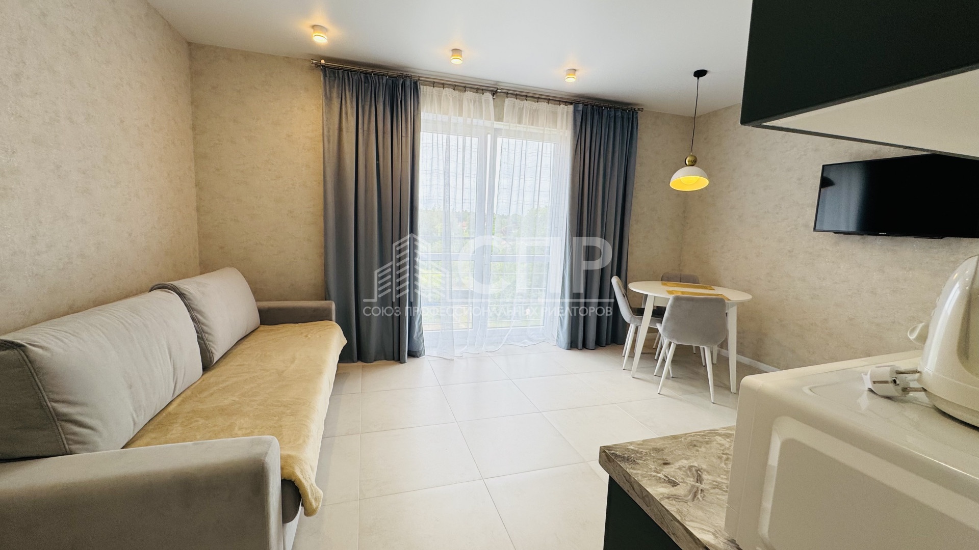 Интерьер студии продуман до мелочей - просторная зона плавно переходит в кухню, оборудованную современной техникой и удобной мебелью. Вы оцените преимущество просторной комнаты, современной кухни, удобной ванной комнаты и приятных оттенков отделки.