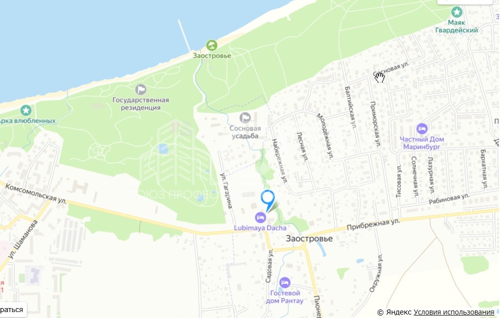 Просторная студия расположена между поселком Заостровье и городом Пионерским.