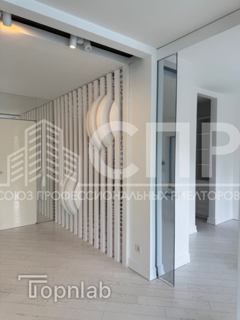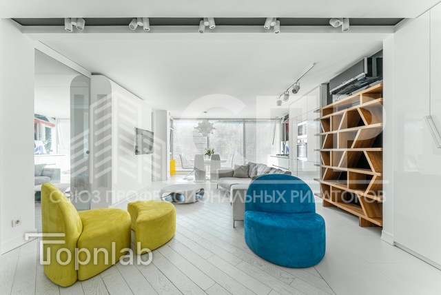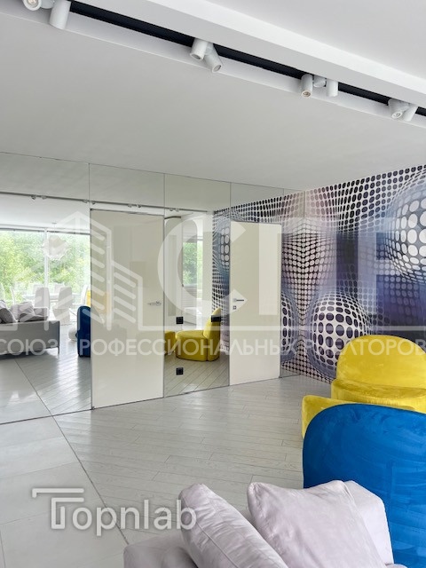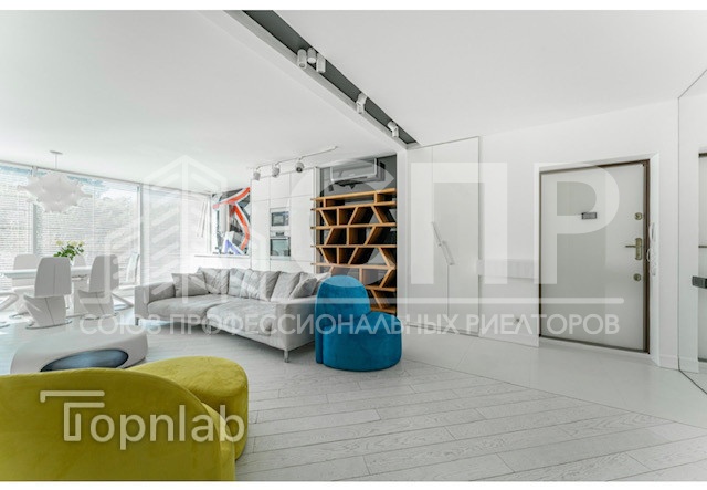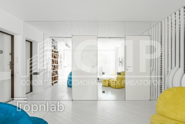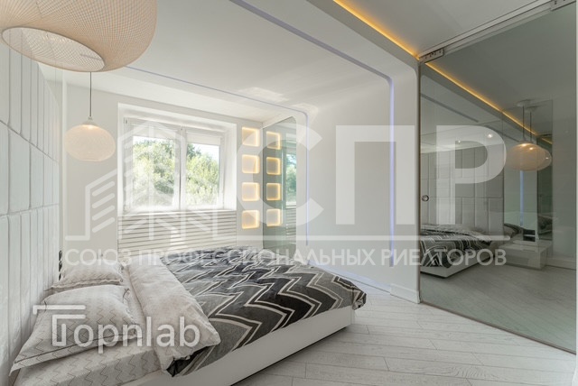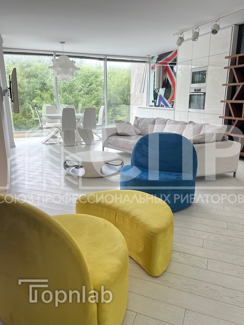 Вся мебель производства Италия: невероятно удобный диван от VALENTINI, кресла и пуф Ligne Roset из алькантары, кровать, прикроватные тумбы Очень вместительная гардеробная с выходом из спальни.