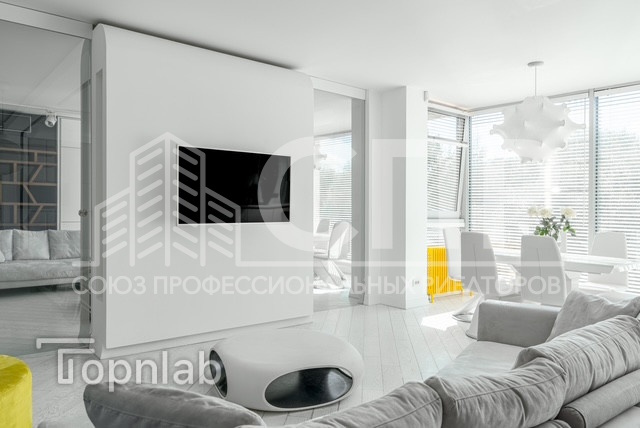 Пространство квартиры отличается продуманной планировкой. Ощущением пространства стали панорамные окна из алюминия, с легким тонированием, которые под заказ были привезены из Литвы. Под окнами установлены белоснежные конвекторы в полу.