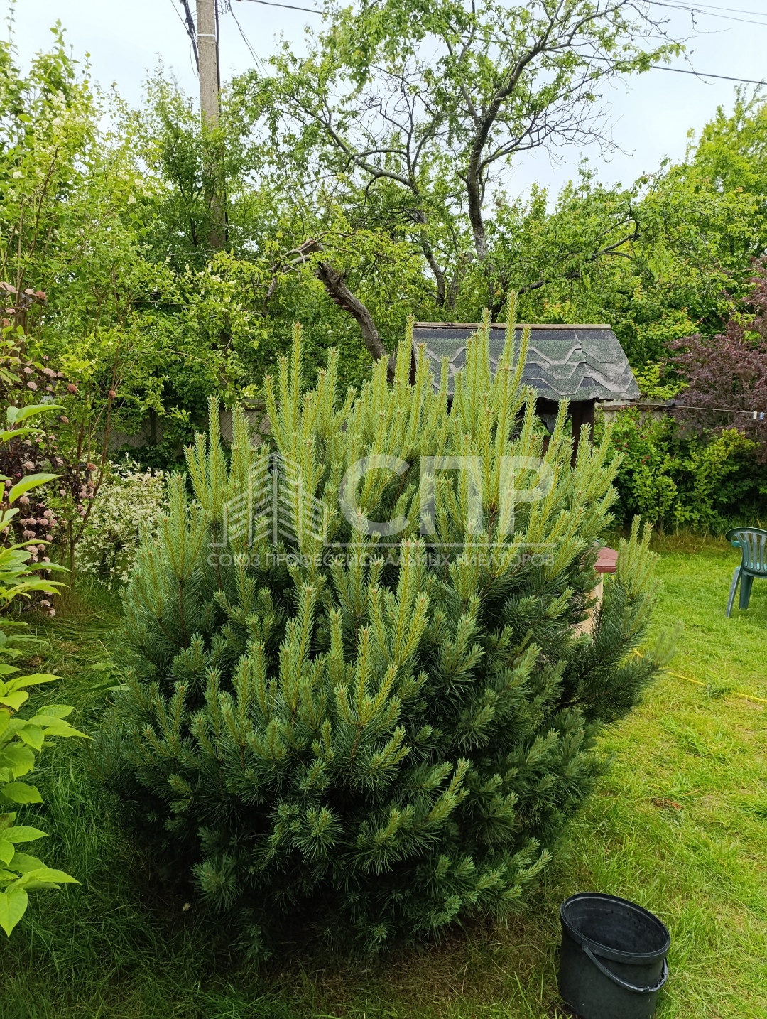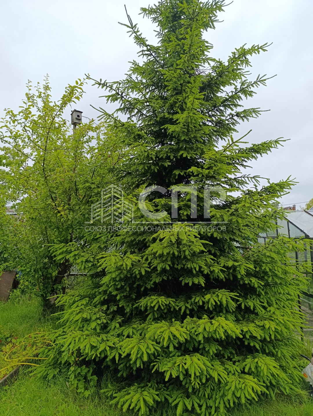 Цветы, хвойные растения.