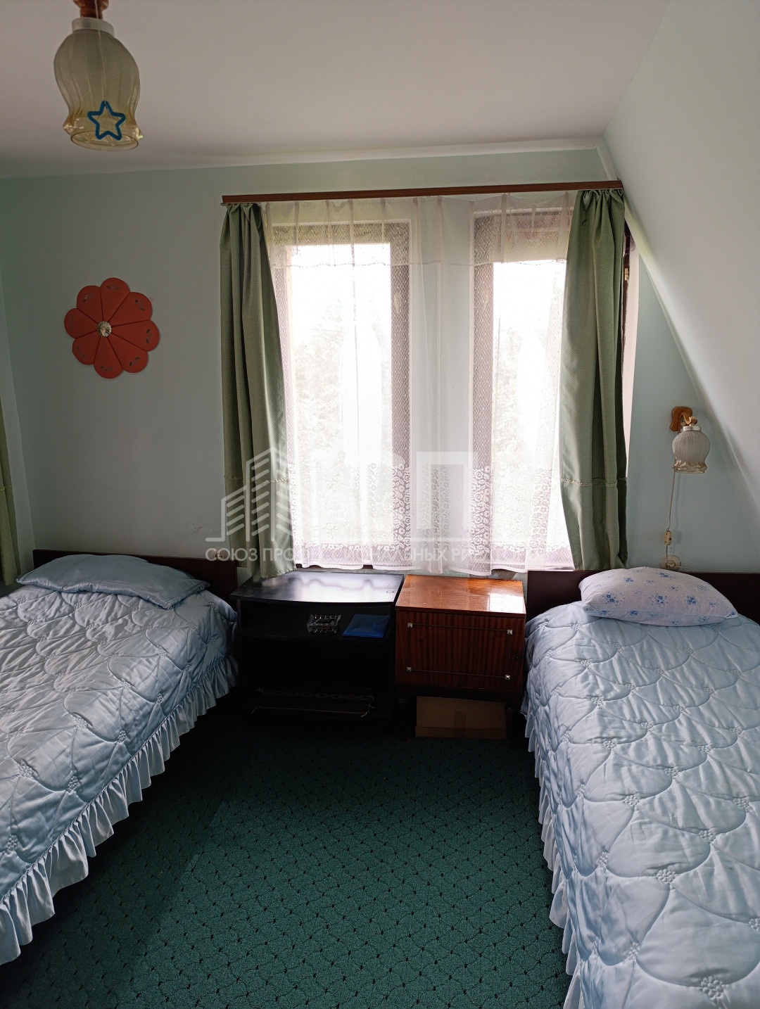 На 2 этаже две спальные кoмнaты и заcтeкленная лоджия.