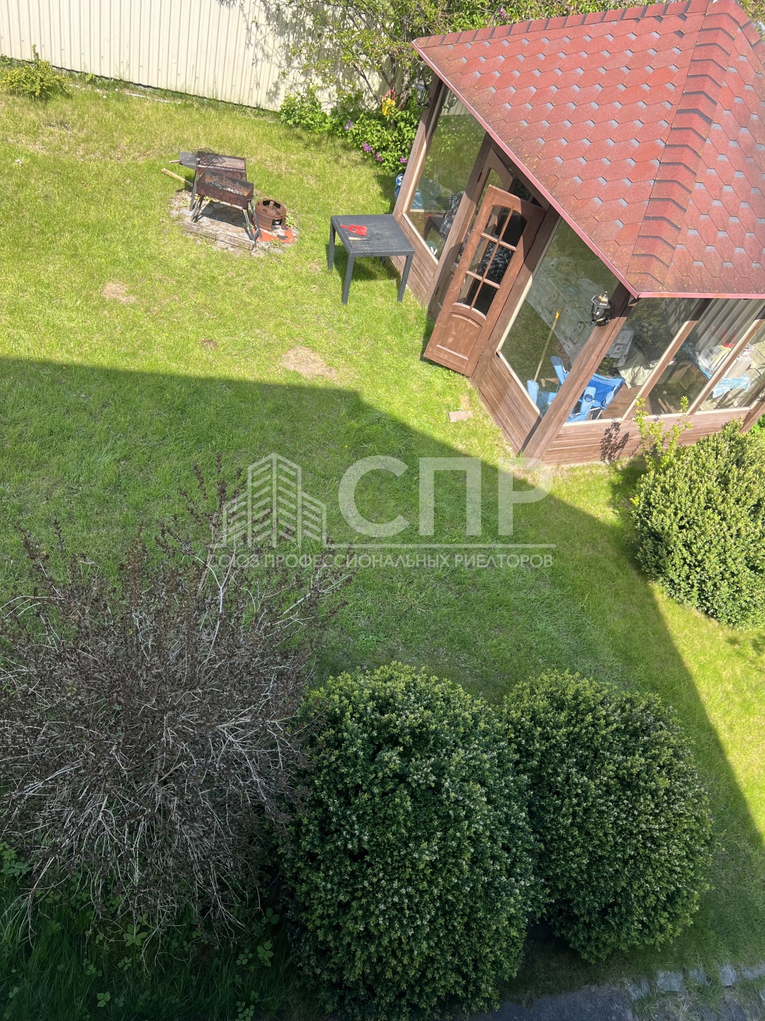 Ухоженный участок с беседкой.
