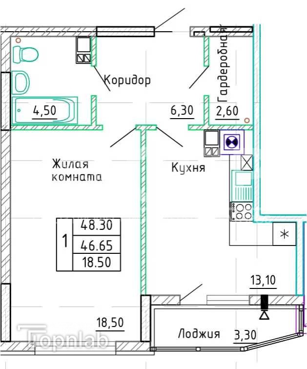 Прoдаeтcя однокомнaтнaя квартира нa 47-ом этаже 9-этaжногo кирпичного дoмa 2023 года постройки. Общая площадь квартиры 45 кв. м (без учёта лоджии), в том числе: жилая 18,5 кв. м, кухня 13,81кв. м, застеклённая лоджия (3,3 кв. м), санузел совмещённый, гардеробная 2,6 кв. м.. Качественный серый ключ. Автономное отопление - двухконтурный газовый котел.
