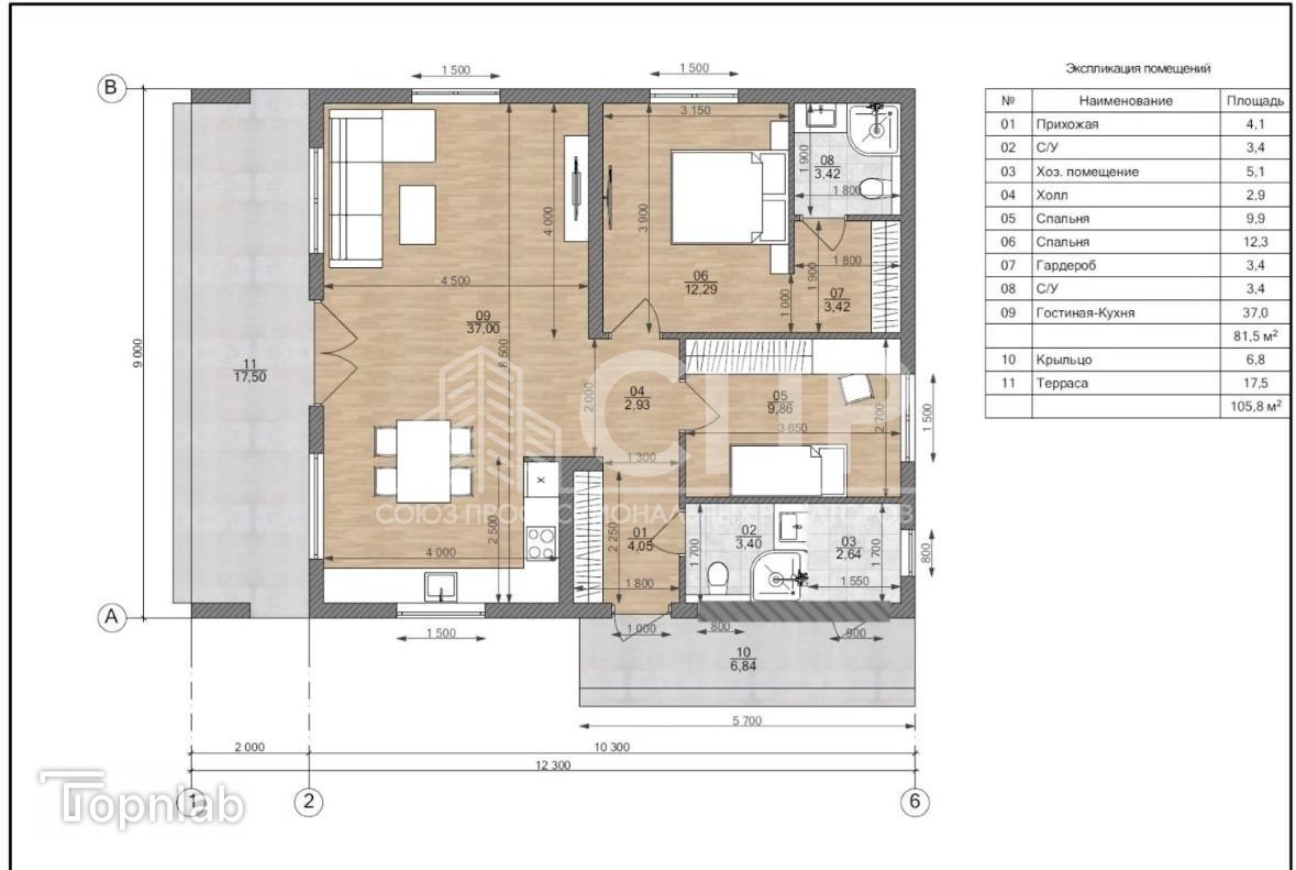 Площадь дома: 101 кв.м.