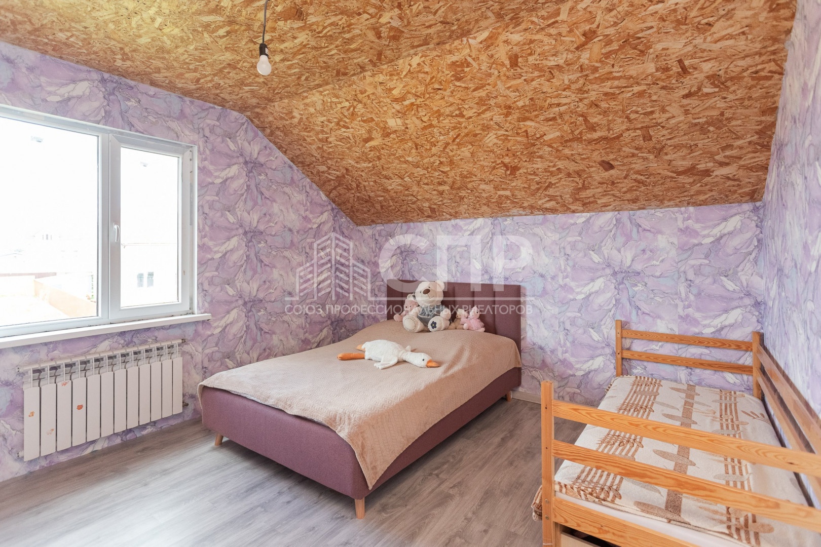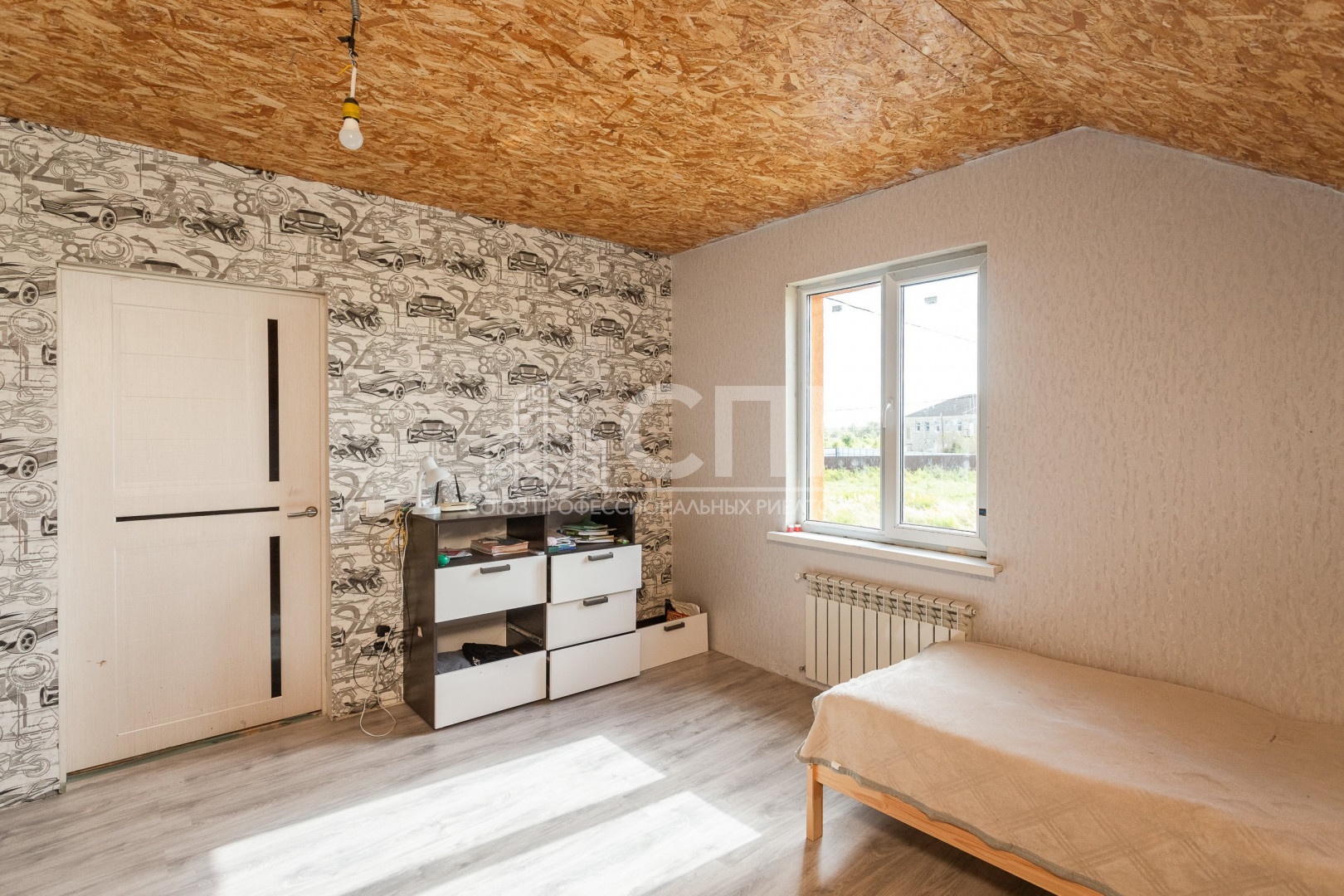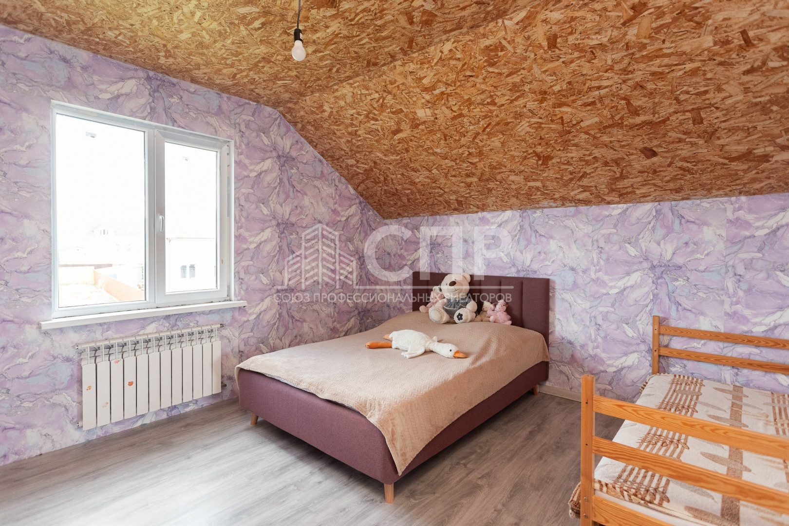 На первом этаже очень большая кухня-гостиная , уютная спальня , прихожая с лестницей на второй этаж, санузел совмещенный , есть техническое помещение. На втором этаже : три комнаты , санузел и небольшой холл .