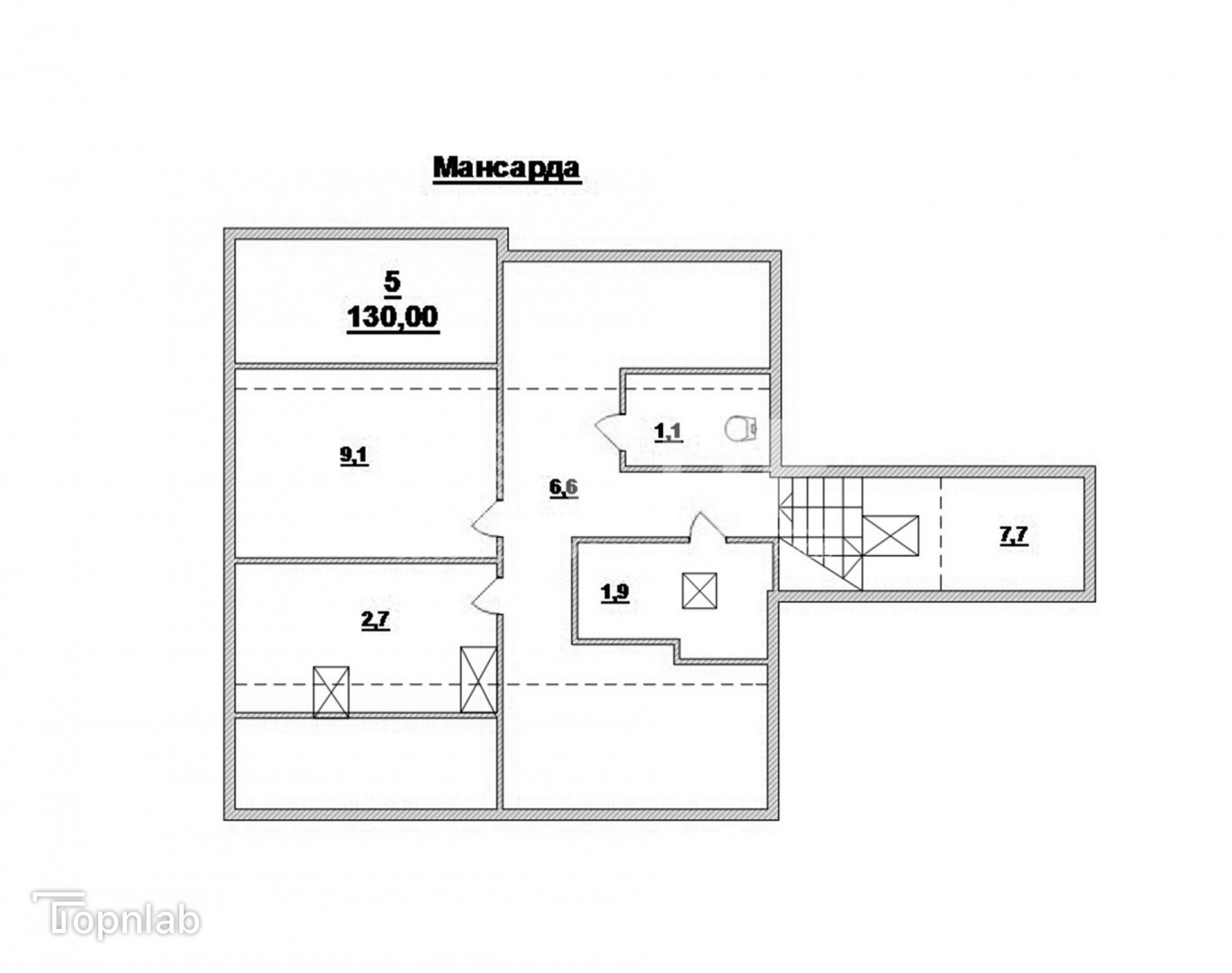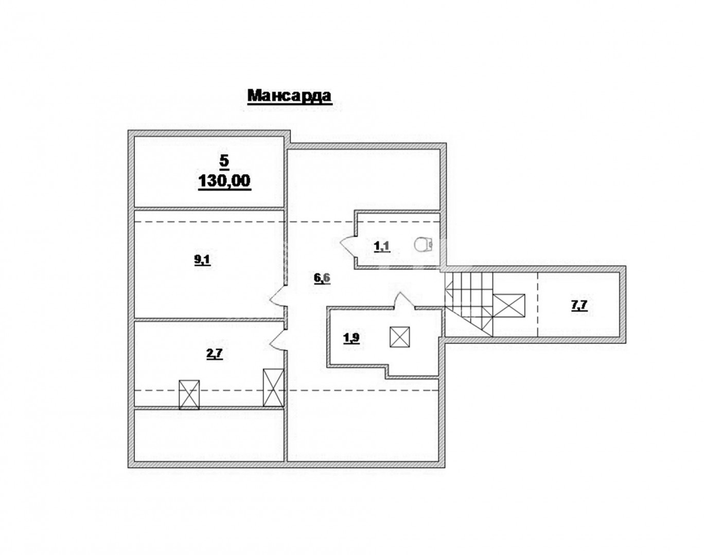 Общая площадь 130 кв.м., комнаты изолированные 27, 27, 18, 9 и 8,7 кв.м., кухня 9 кв.м., два балкона, окна выходят на разные стороны (на восток и запад), на каждом этаже свой санузел.
