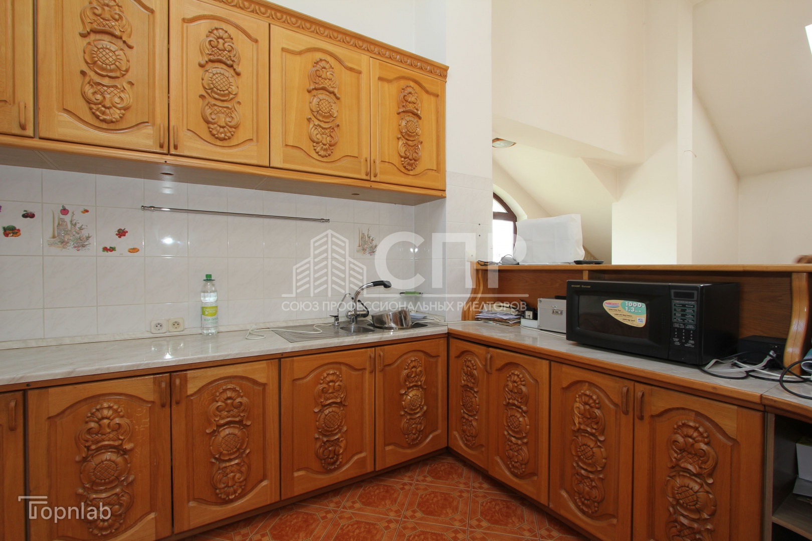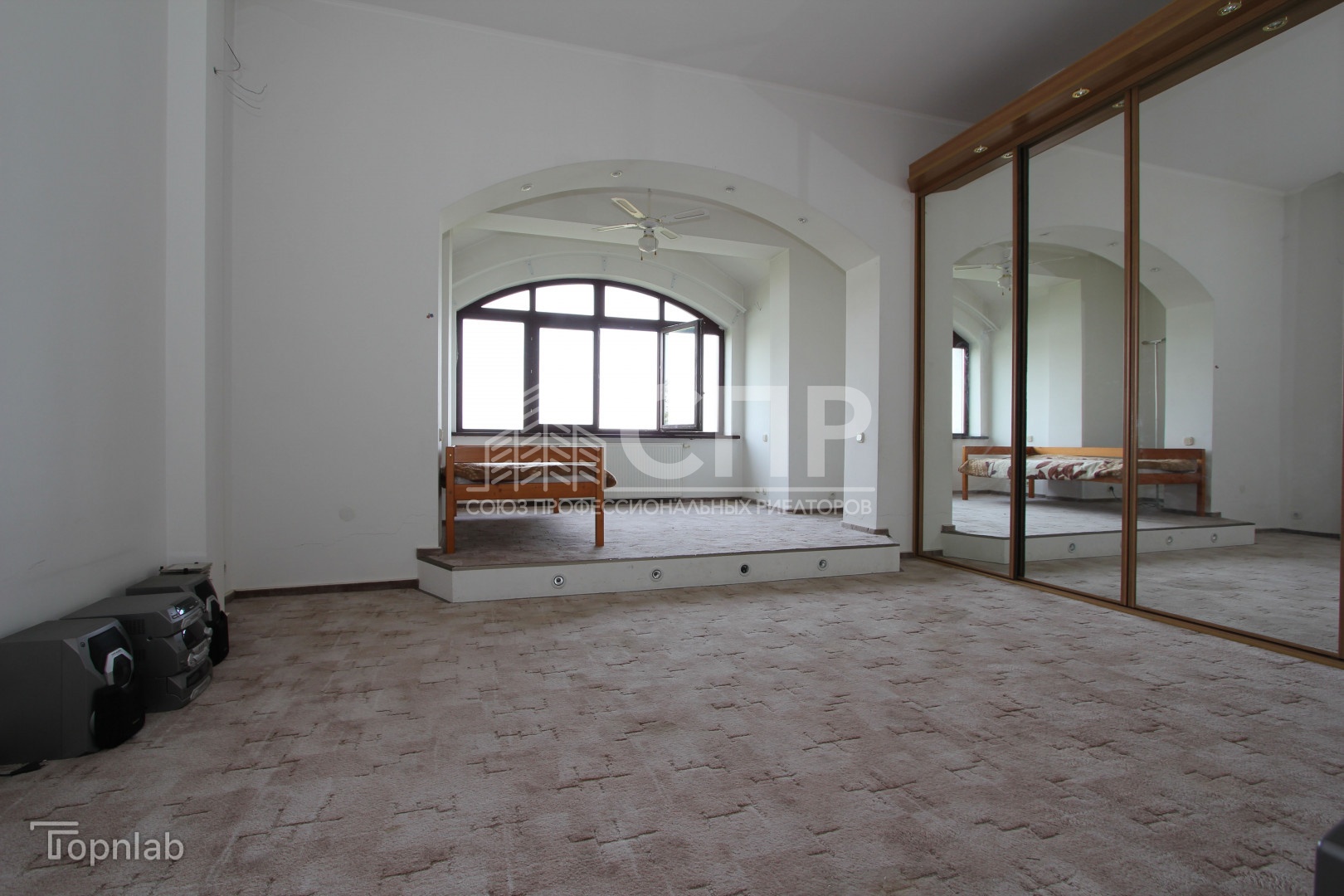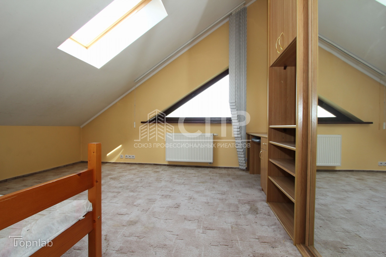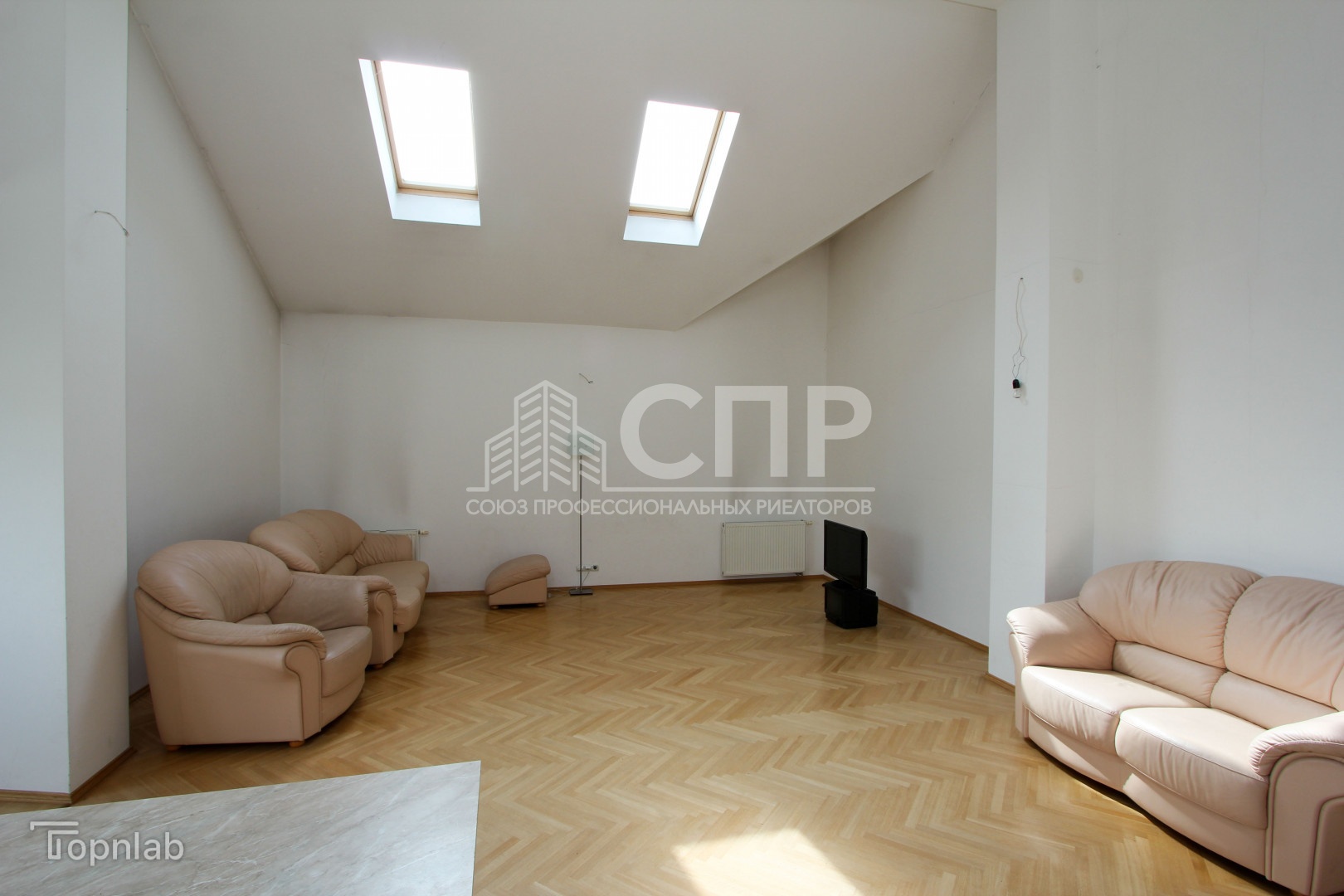Высокие потолки 3,4 м и отличное освещение, много нестандартных окон полукруглые формы с деревянными стеклопакетами, окна-велюкс. Установлена входная противовзломная дверь Герда.