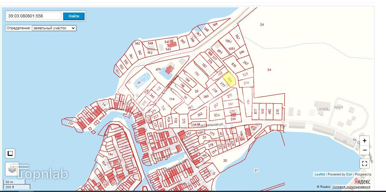 Кадастровый номер 39:03:080801:274.