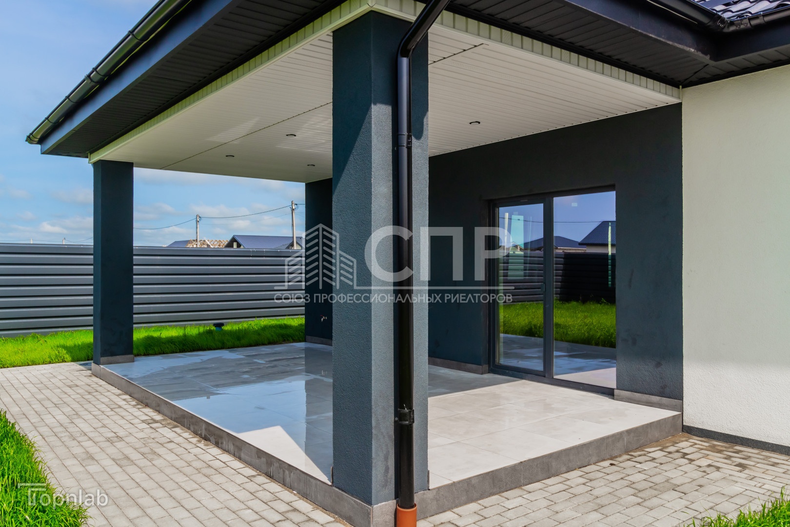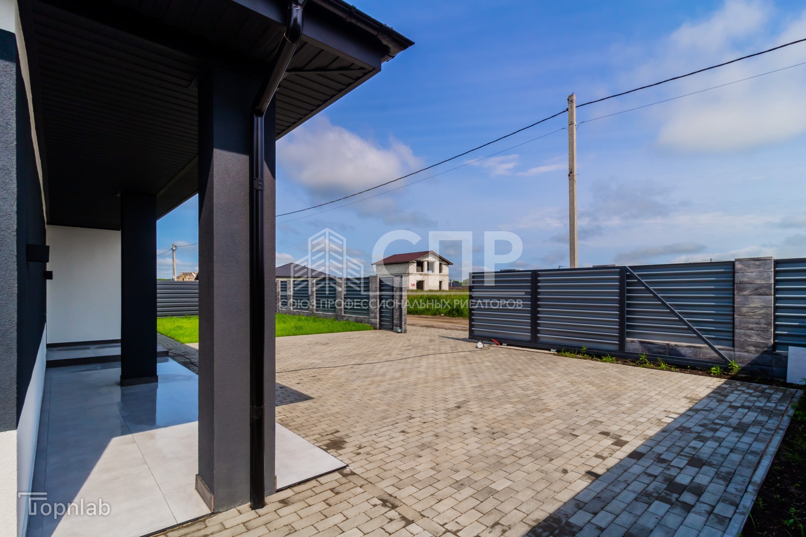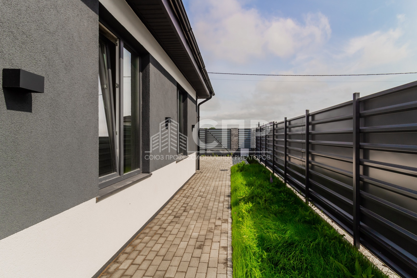 Территория благоустроена, установлено ограждение, откатные ворота, подсветка фасада.