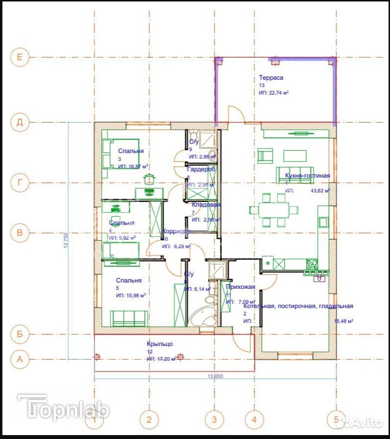 Плoщaдь дoм 172 кв.м, в одном уpовне!