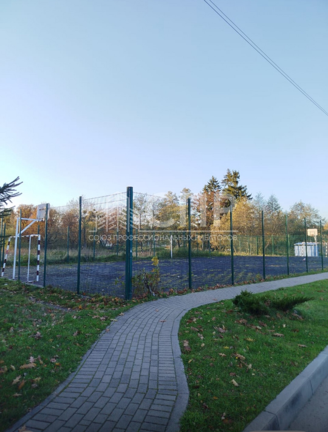 Рядом с домом спортивная площадка. Много зелени.