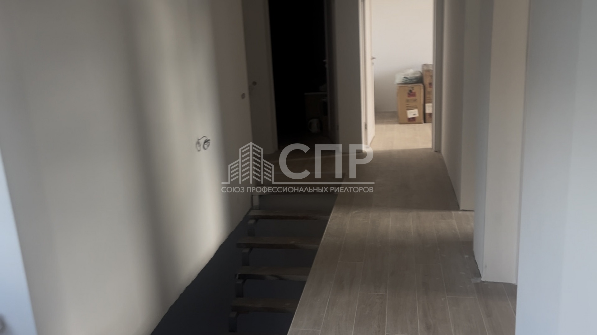 На первом этаже находятся два гараж, один из них с собственным выходом в залив, комната свободной планировки ,которую можно использовать ,как кухню и гостевая комната. На втором этаже располагается полноценная трехкомнатная квартира ,с отдельными тремя спальнями и больной кухней-столовой.