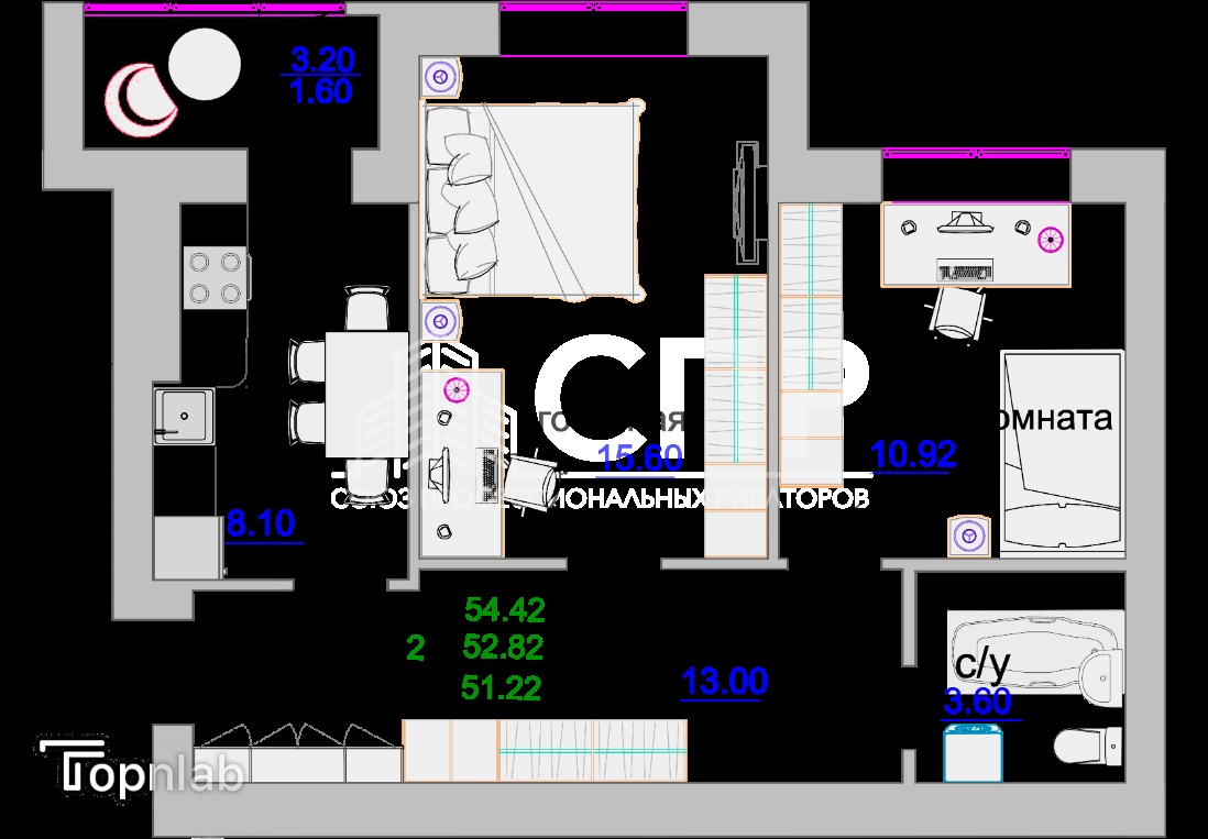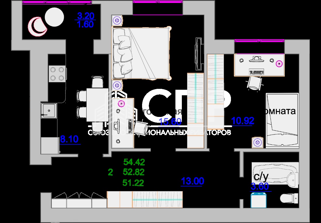 Площадь квартиры: 54 кв.м.