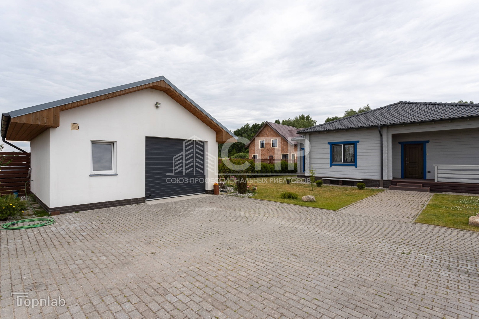 Теплый гараж на две машины и огромная парковка при въезде на территорию дома