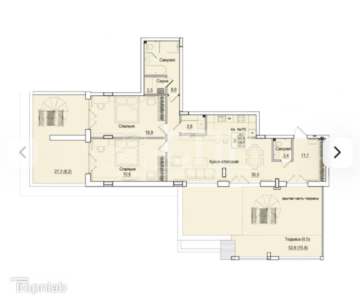 Площадь квартиры: 126.4 кв.м.