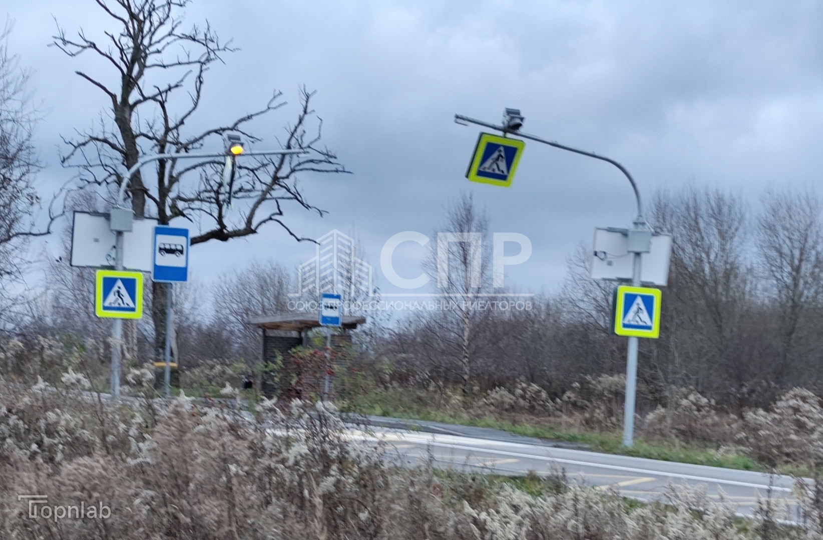 У въезда в поселок остановка общественного транспорта. От трассы по центральной улице отсыпана дорога.