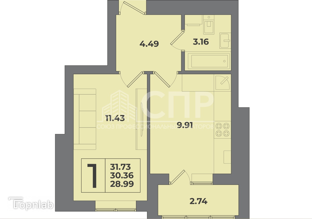 Площадь квартиры: 31.73 кв.м.