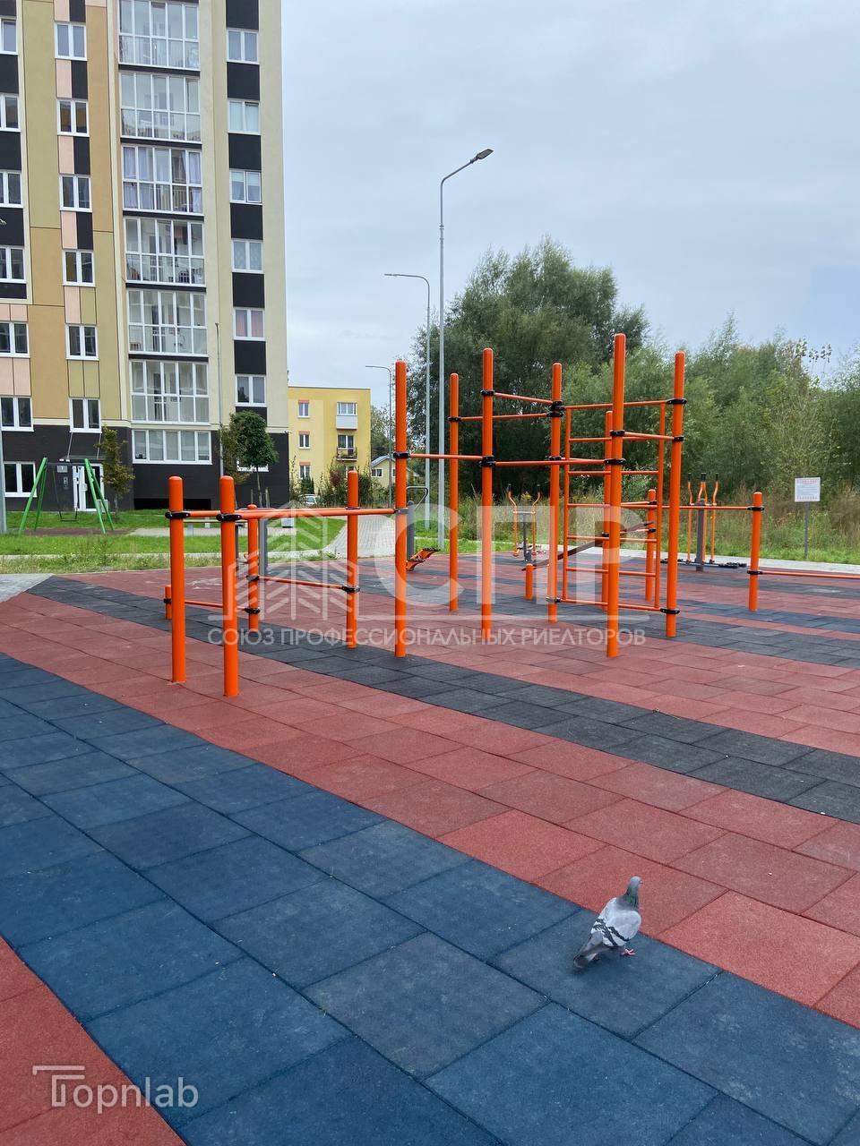 Во дворе детские игровые и спортивные площадки, а также обширные зеленые зоны