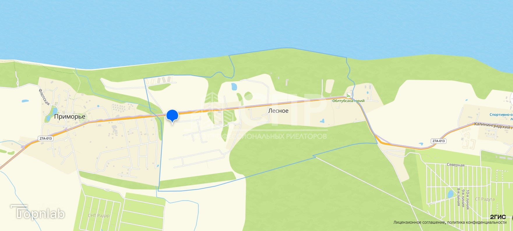 Участок расположен в прибрежной зоне с быстро развивающейся курортно -оздоровительной инфраструктурой, в экологически чистом районе, в непосредственной близости от реликтового Варникенского леса , получившего своё название от старого немецкого названия пос. Лесного — Warnicken. Он считается последним нерукотворным лесным массивом на севере Самбийского полуострова. Здесь растут вековые деревья, немало краснокнижных растений. Прекрасен ландшафт с оврагами и урочищами, выходящими к морю и захватывающимивидами.