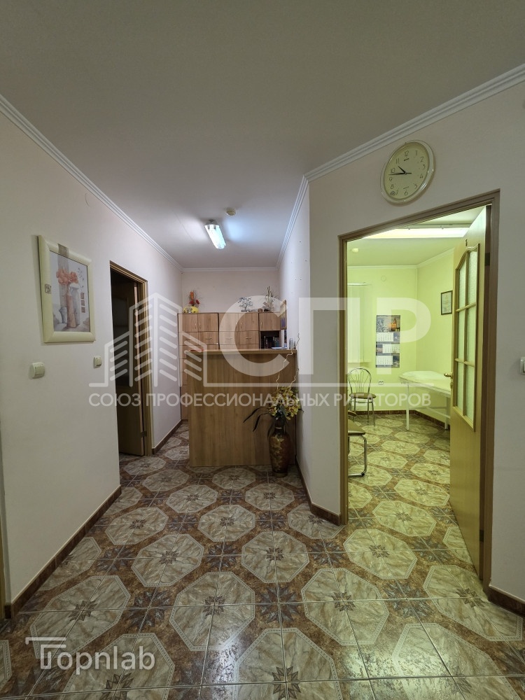 Конфигурация помещения: холл, рецепшен, вестибюль с зоной отдыха, 6 изолированных кабинетов ( в каждом кабинете есть мокрая точка), подсобное помещение - кухня 15 кв.м, с/у.