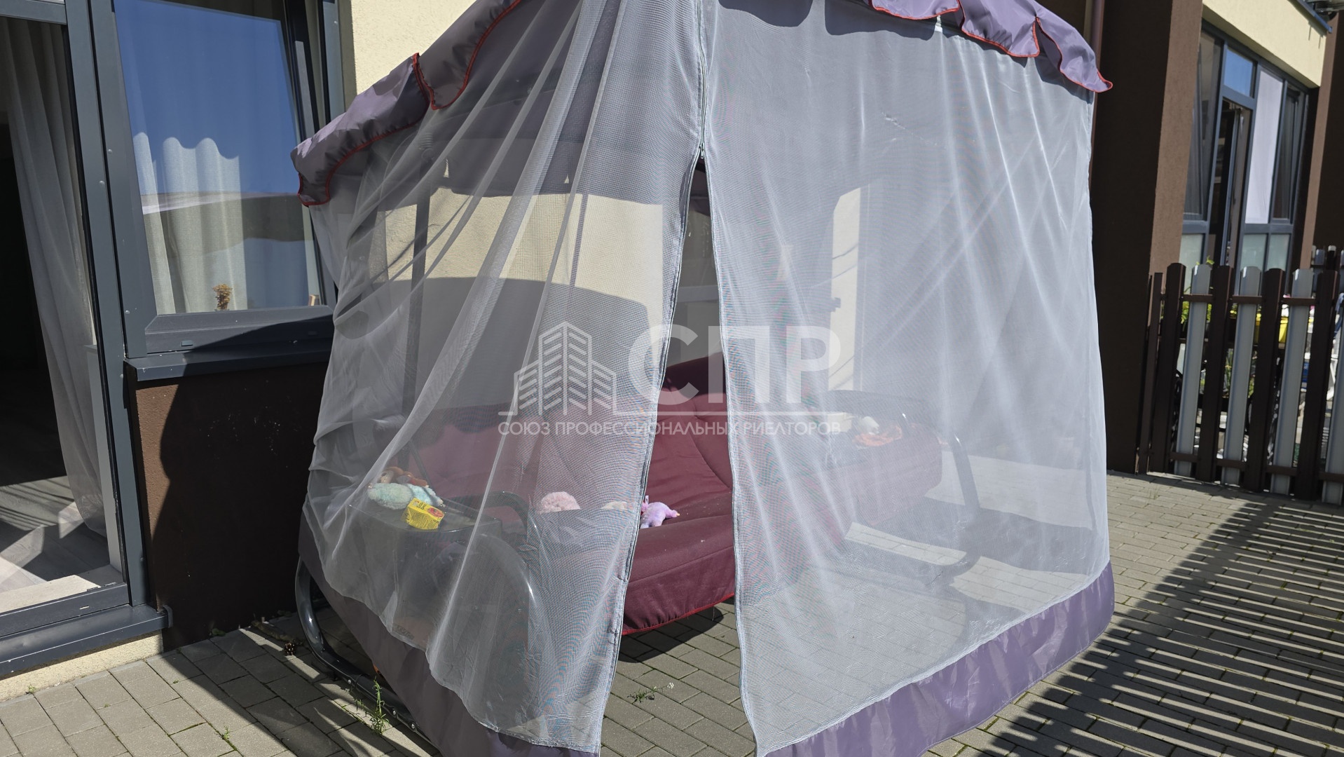 - Терраса — 21,5 м? с электричеством и розетками, выход на террасу из обеих спален.