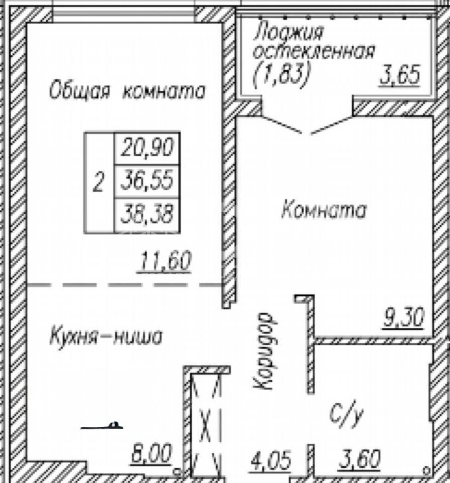 Площадь квартиры: 36.8 кв.м.