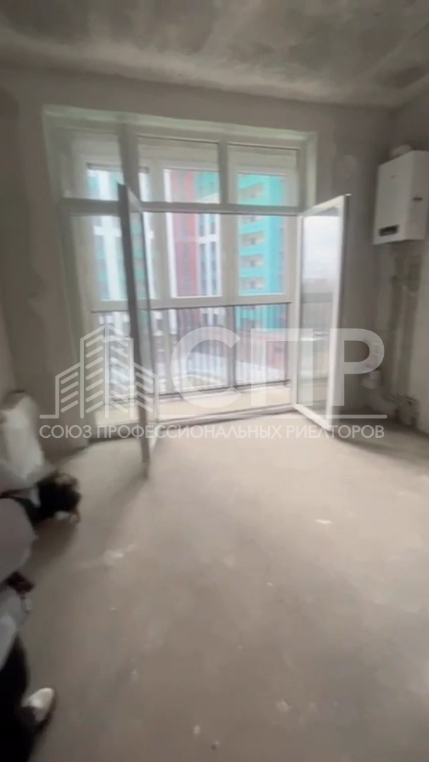 Общая площадь - 41,11 кв. м. Комната - 16,4 кв. м. Кухня - 12,4 кв. м. Санузел совмещенный. Окна выходят во двор (юго-запад), Панорамное остекление лоджии. Автономное отопление. Огороженная территория. Подземный паркинг.