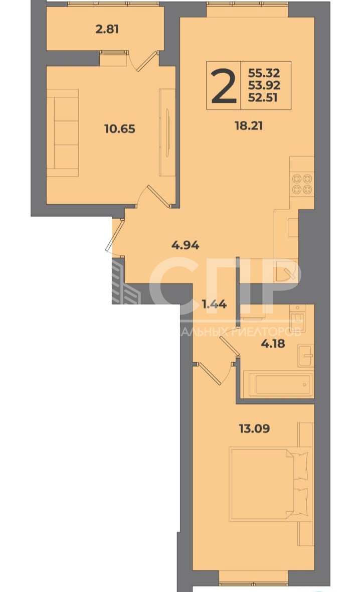 Площадь квартиры: 55.32 кв.м.