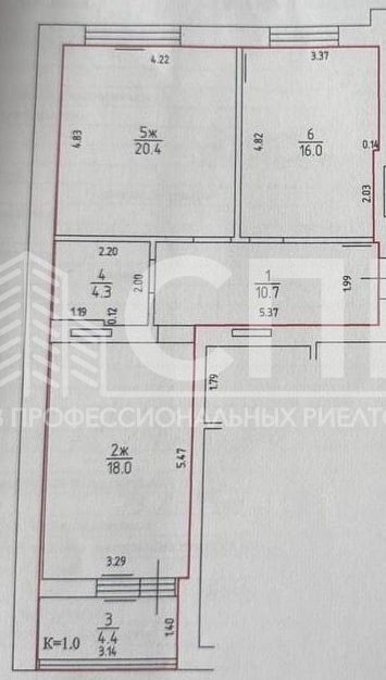 Жилая площадь: 38.4 кв.м.