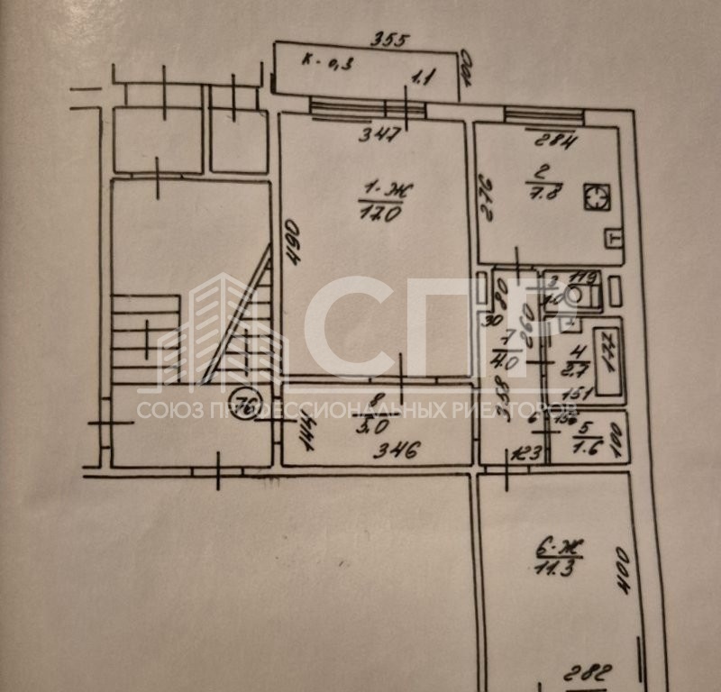 Площадь кухни 7,8 м2