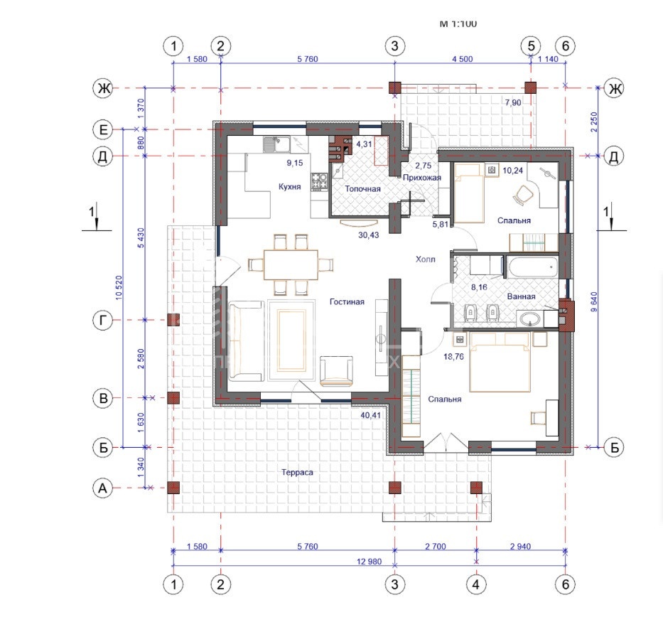 Площадь дома: 96.8 кв.м.