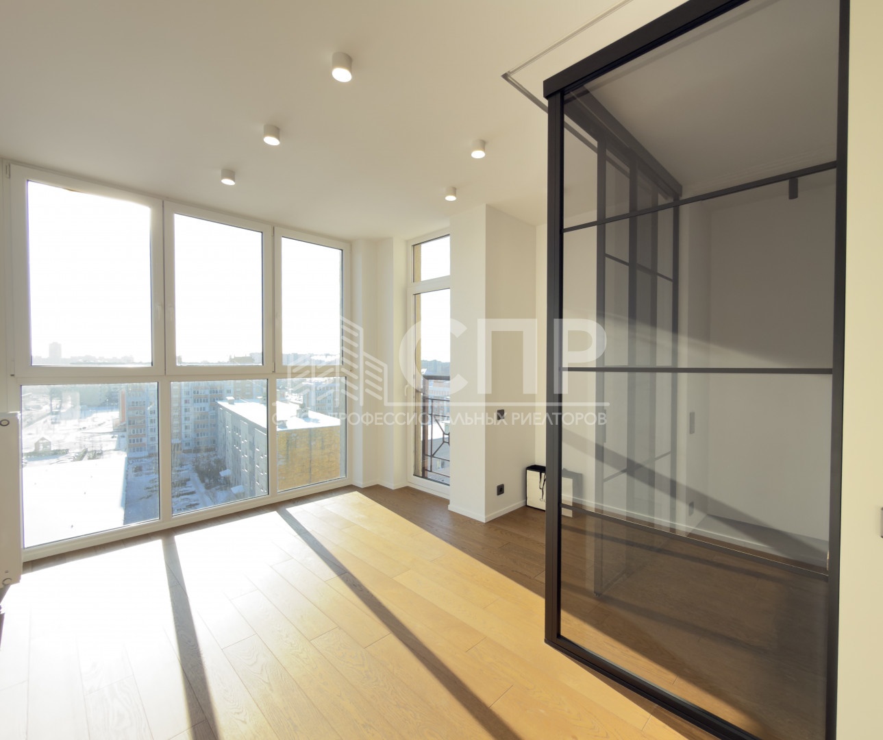 9 этаж: Прихожая, кухня-гостиная с выходом на открытый балкон по всему периметру квартиры, гостевой санузел.