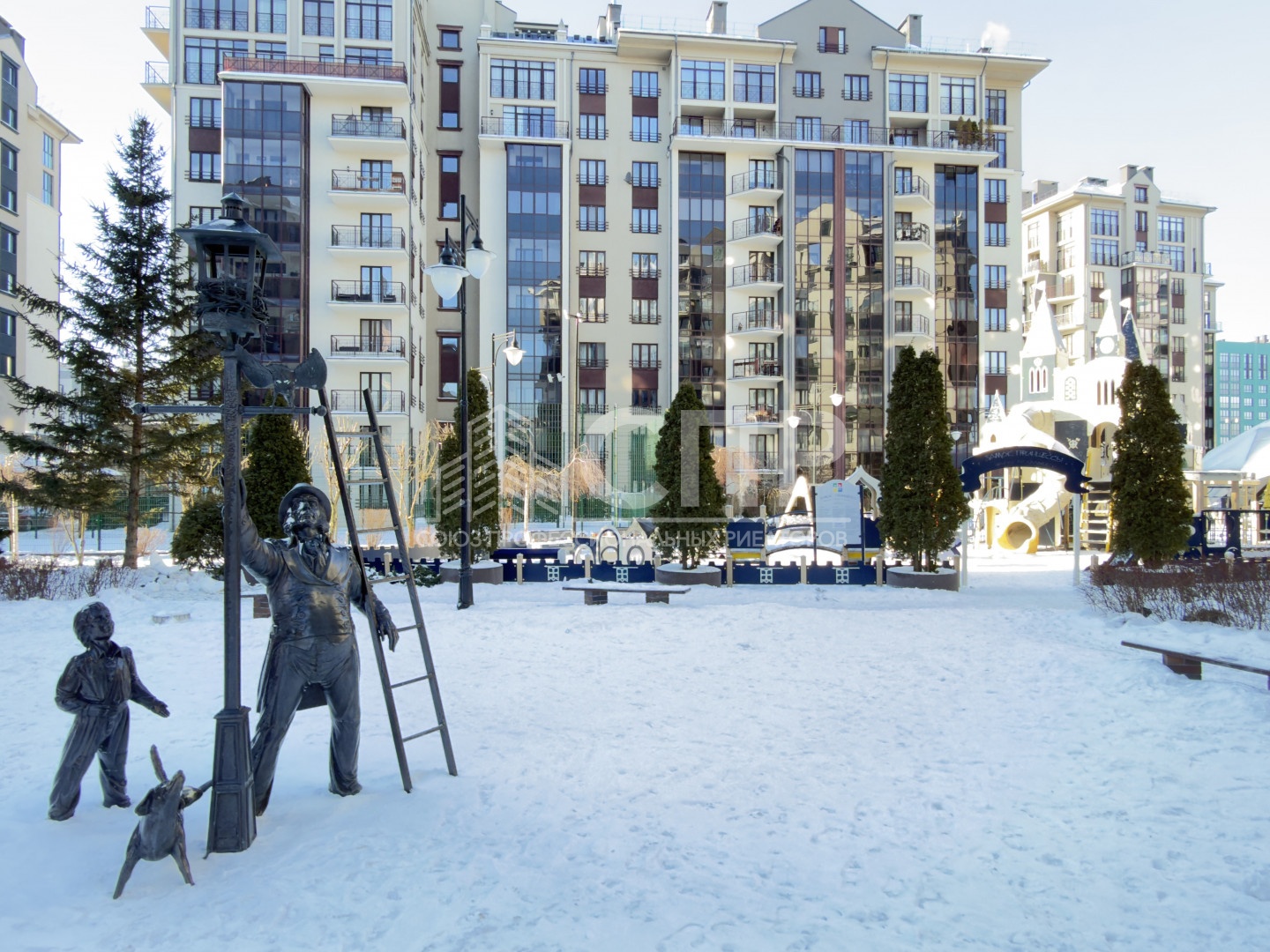 Территория комплекса огорожена, оборудована круглосуточным видеонаблюдением и охраной, подключено к системе Безопасный город. Своя управляющая компания, участковый пункт.