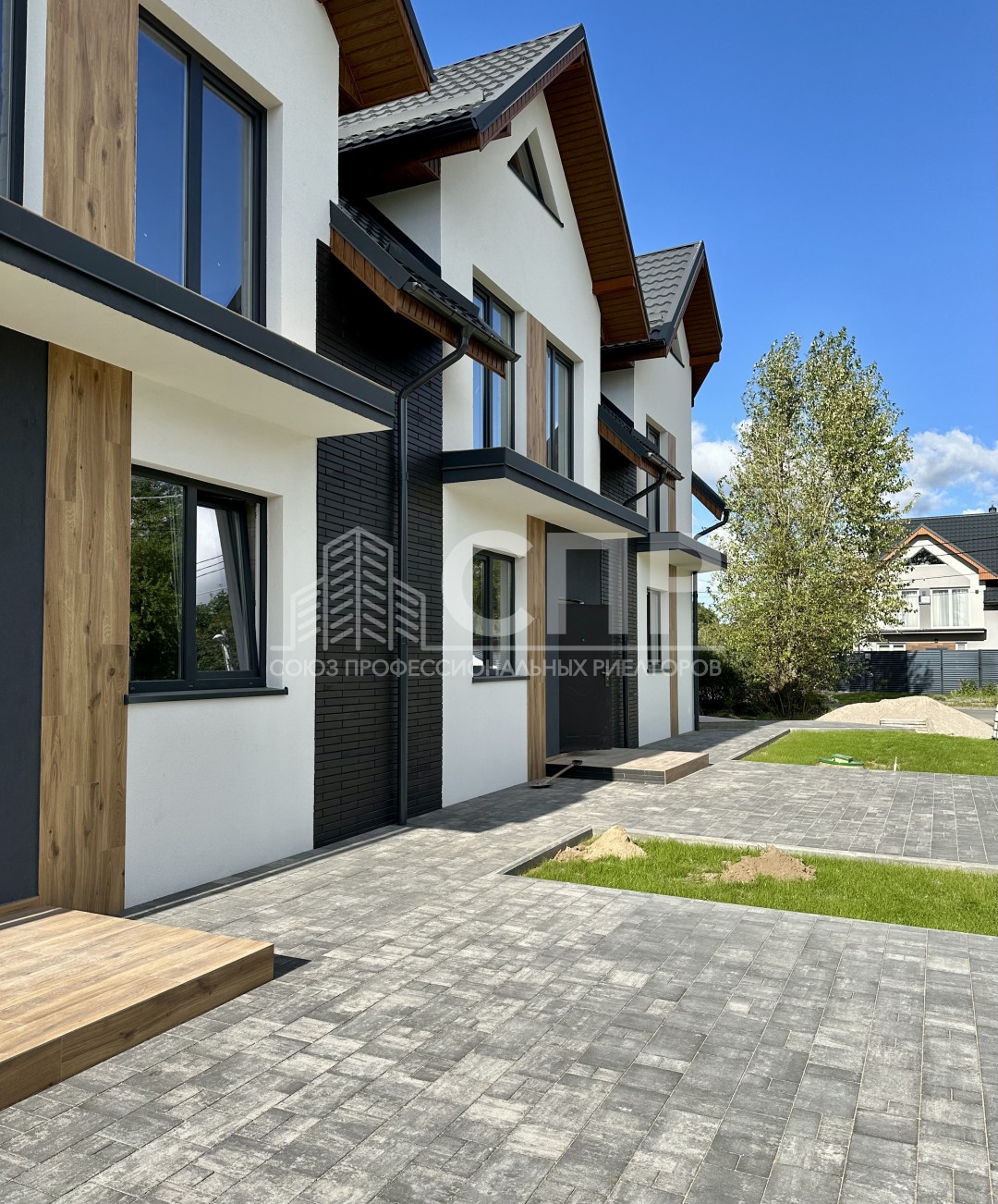 Таунхаус построен с разрешением на строительство: ЖИЛОЙ ДОМ БЛОКИРОВАННОЙ ЗАСТРОЙКИ. Отдельное право собственности на землю и дом.