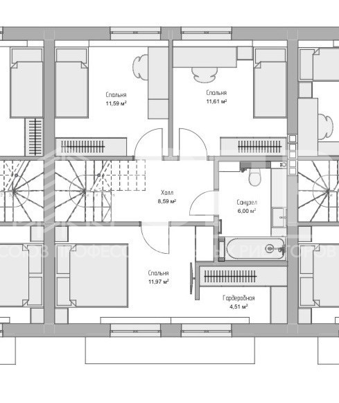 На 2?? этаже - 3 спальни, ванная комната.
