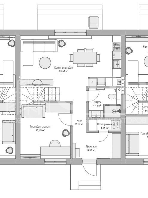 Площадь таунхауса: 136 кв.м.