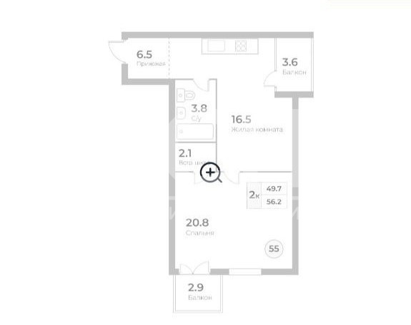 Площадь квартиры: 56.9 кв.м.
