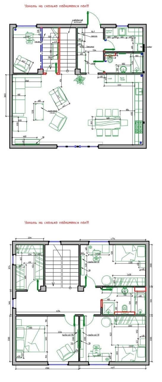 электроснабжение разведено на 1 и 2 этажах;
