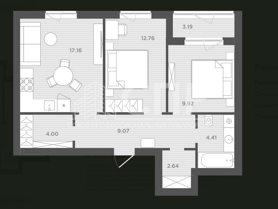 Площадь квартиры: 63 кв.м.
