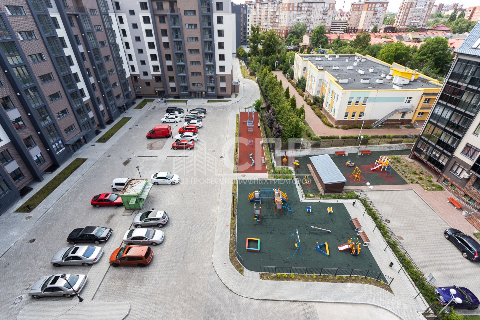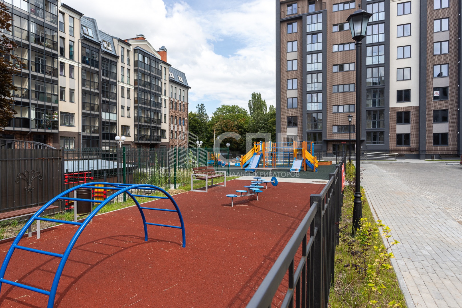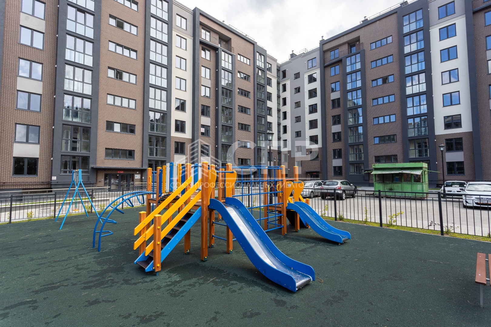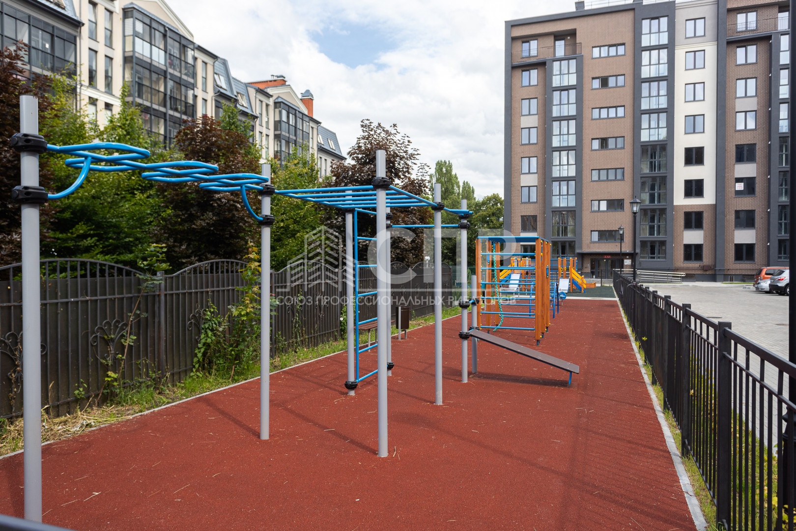 Ваша безопасность и комфорт – наш приоритет. Придомовая территория огорожена, обеспечивая спокойствие жильцов. Для детей оборудованы современные игровые площадки с бесшовным синтетическим покрытием. Рядом расположены физкультурные площадки, окруженные живой изгородью, а спортивная площадка имеет надежное металлическое ограждение. Партерный газон, деревья и кустарники создают уютную зеленую зону, а выделенные места для парковки автомобилей решают вопрос с парковкой.