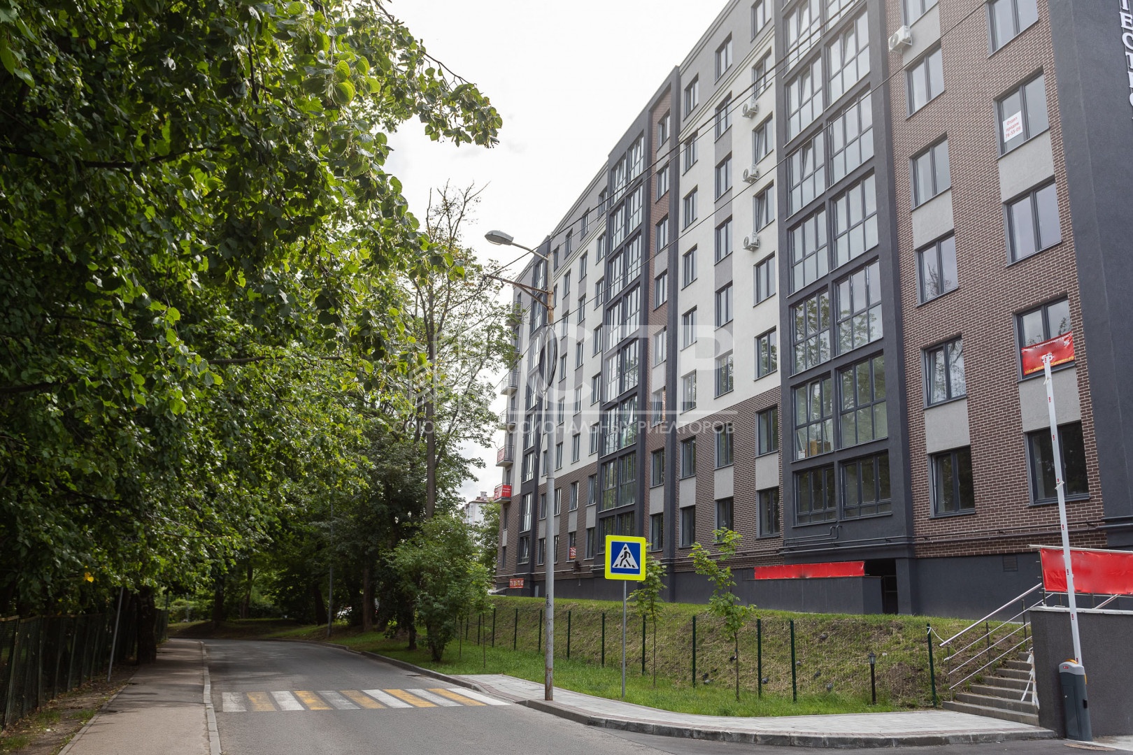 Фасады домов выполнены по современной технологии «Теплоавангард»: утепление пенополистиролом с рассечкой утеплителем из каменной ваты, тонкослойная штукатурка и последующая окраска фасадными красками. Два нижних этажа отделаны клинкерной плиткой, придавая зданию элегантный вид, а верхние этажи окрашены в контрастные цвета, создавая стильный и современный облик.