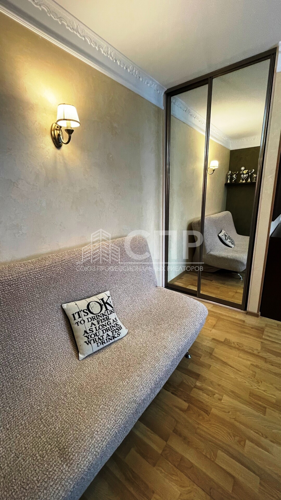 Много мест хранения: в комнате и прихожей - два вместительных встроенных шкафа.
