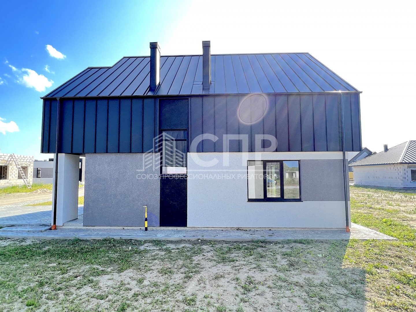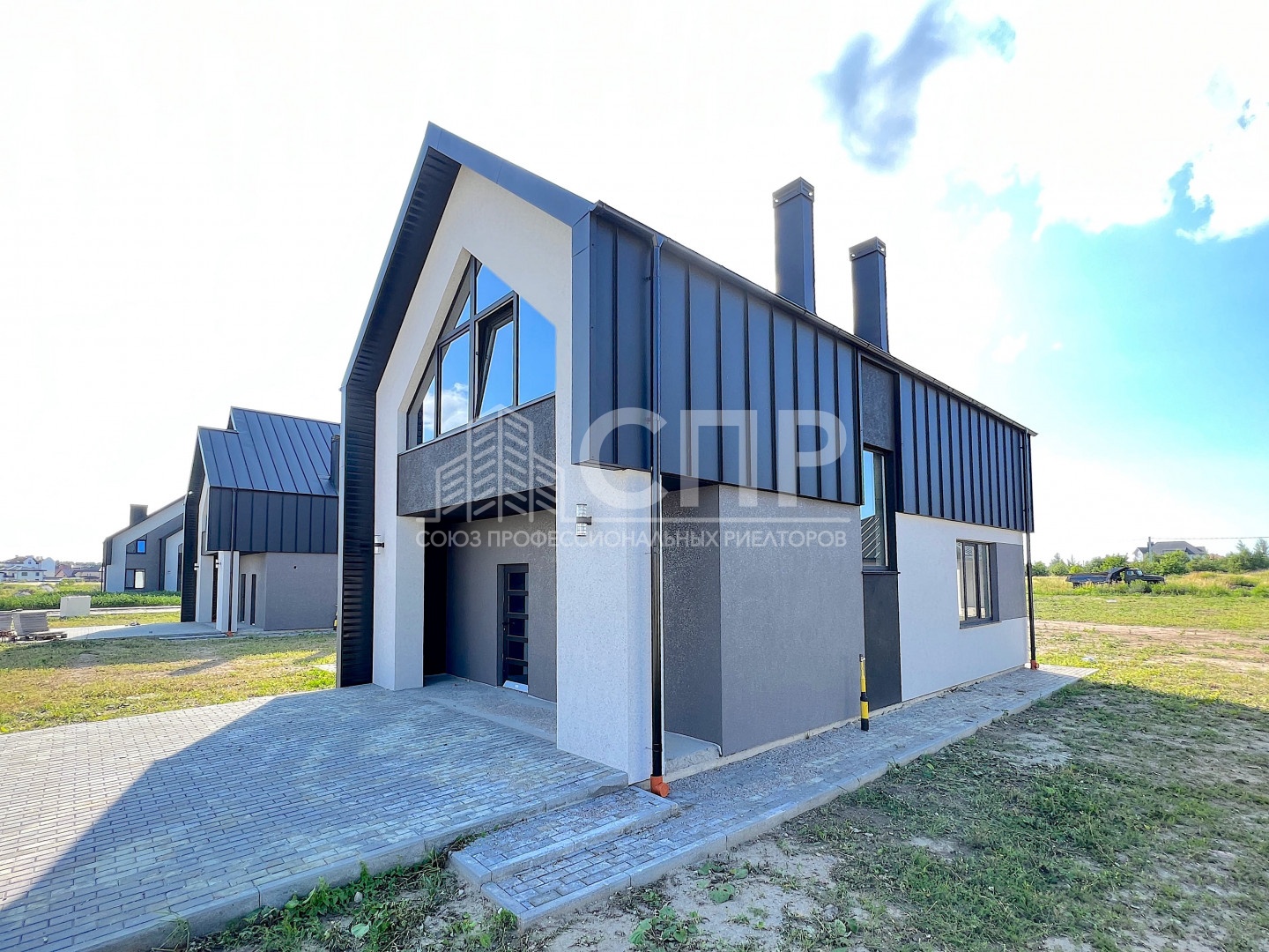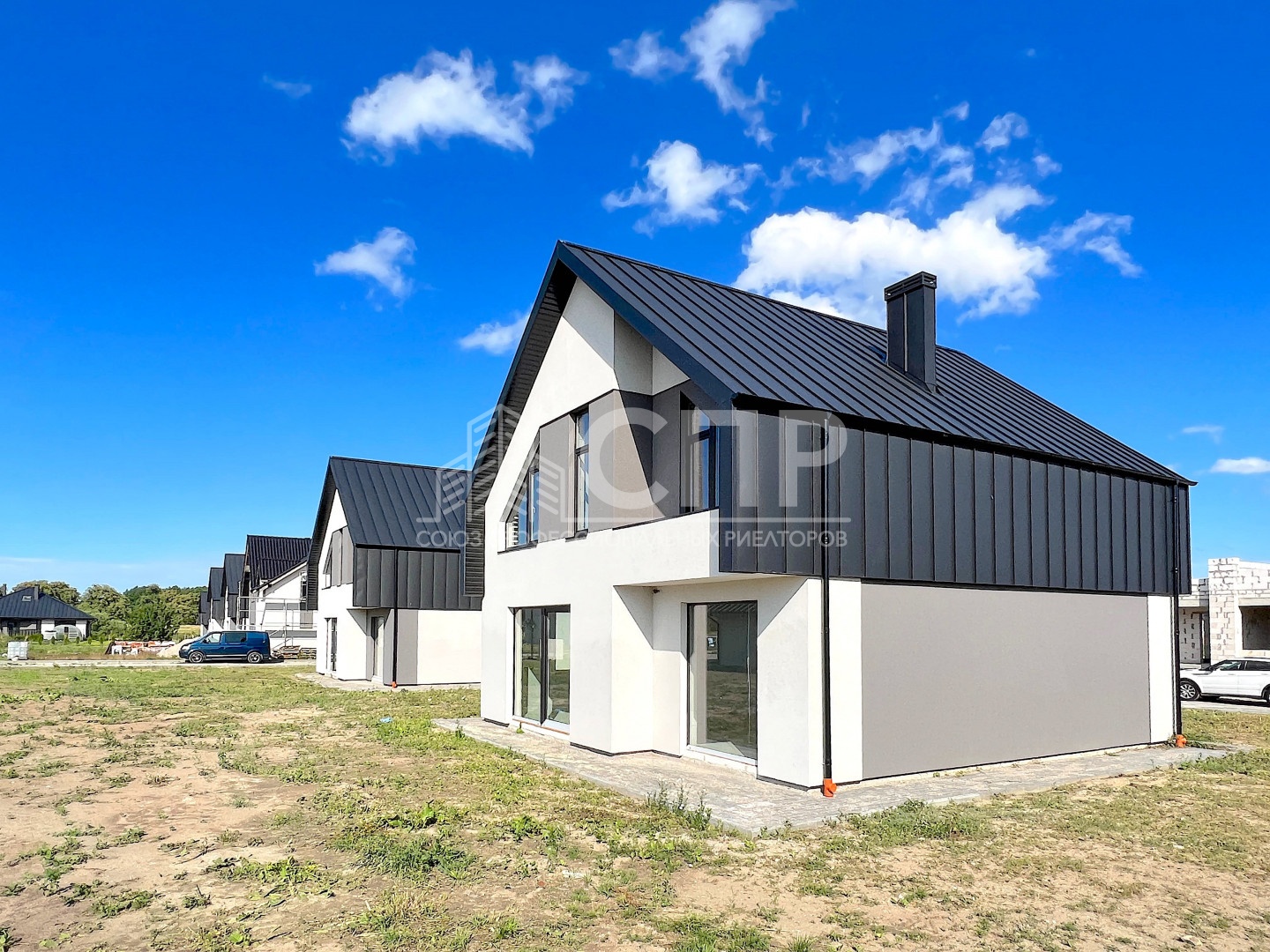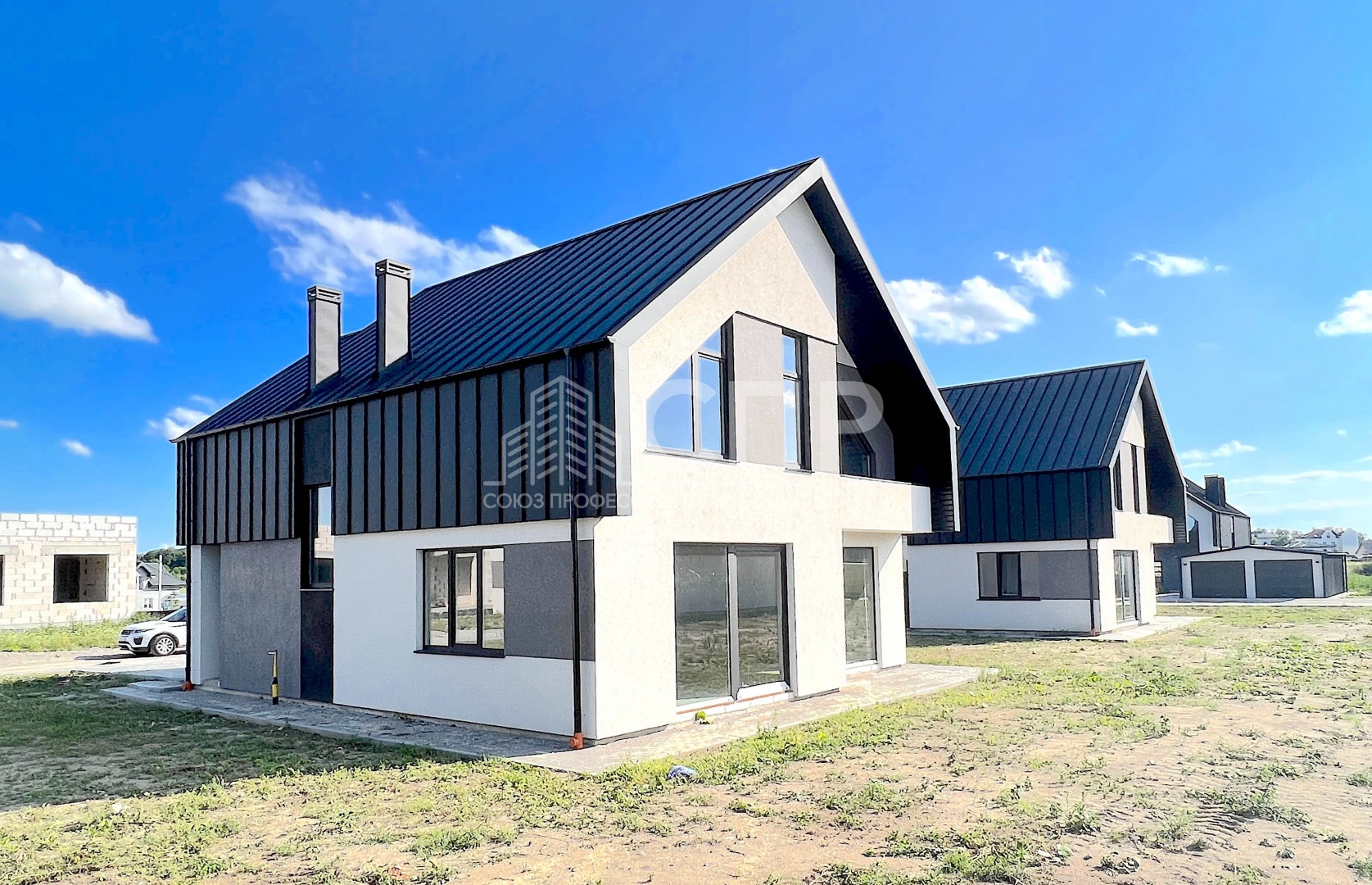 Современная архитектура фасада, дорогие польские отделочные материалы, фальцевая кровля, тонированные 5-камерные стеклопакеты производства Германии.
