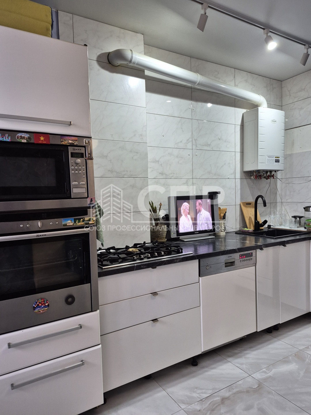 поверхность, духовой шкаф, микроволновая печь, посудомоечная машина, 2 встроенных шкафа. Остальная мебель остается по договоренности.