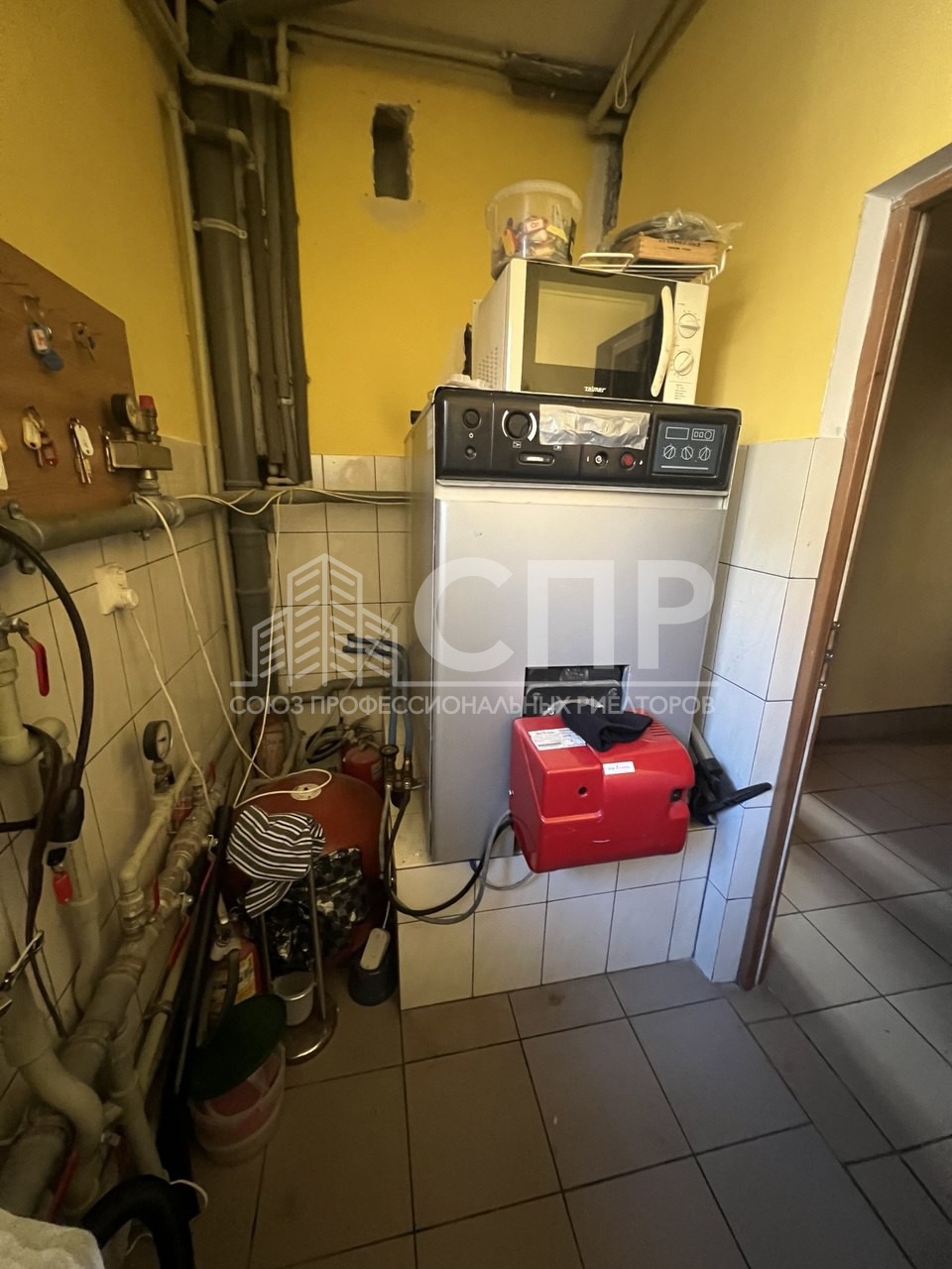 Все коммуникации подключены: свет - 15 кВТ, 3 фазы; вода - центральная; канализация - септик; отопление - котел на жидком топливе и камин.